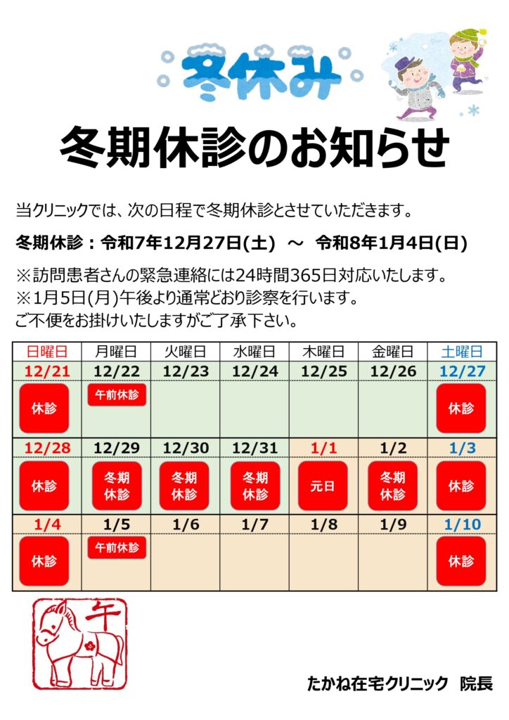 冬期休診のお知らせ